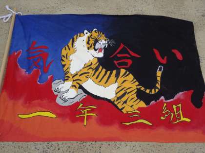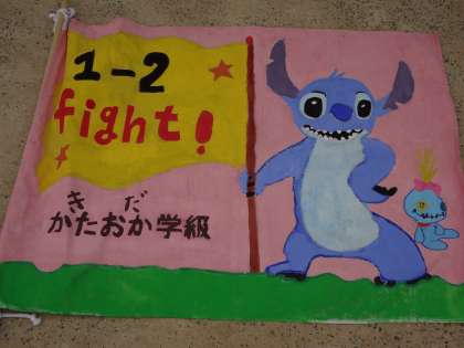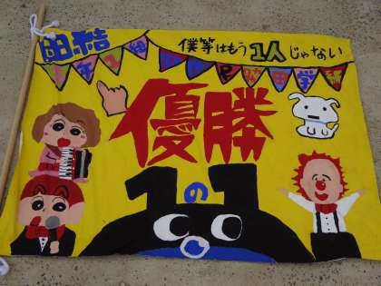 17日(水)13:00〜 運動会開催です。各クラスの応援旗紹介します。1組(写真左)2組(写真中央)3組(写真右)