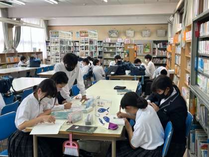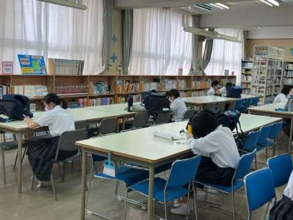 図書室にて、テストに向けて、個人勉強したり、教え合ったりして学習を進めています。