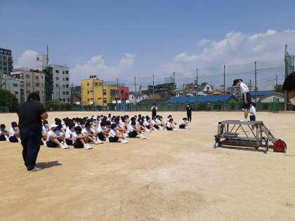 1年スポーツ大会、開会式です。