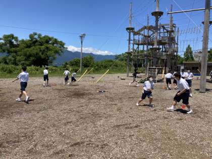 昼食後はクラスの絆を深めるローエレメントに取り組んでおります。