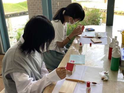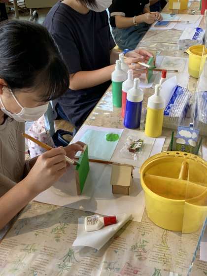 オルゴールの色塗りをしています。みんなビビットカラーで元気が出ますね!