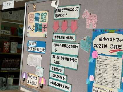 図書室の前には色々な情報などが飾られ、多くの来館を待っています。