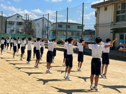 体育大会に向けての練習が進んでいますが、今日は準備運動(ラジオ体操)の確認です。