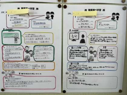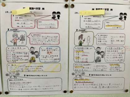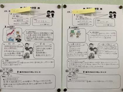 2年生ではキャリア教育として職場体験を行います。その前に各自で様々な職業について調べレポートを作成しました。