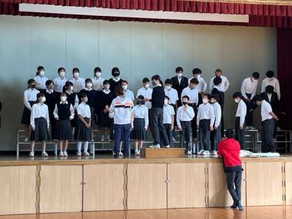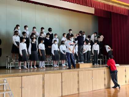 音楽の授業は合唱コンクールに向けて体育館で本番同様の練習です。