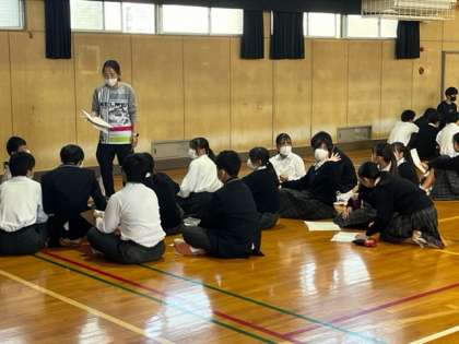 集合場所や時間、持ち物や注意点など確認しています。明日から2日間頑張りましょう。