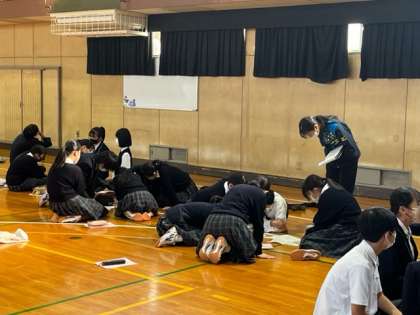 集合場所や時間、持ち物や注意点など確認しています。明日から2日間頑張りましょう。