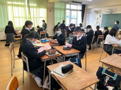 1年生は金曜日の校外学習に向けて、発表用のパワーポイントを作成しています。