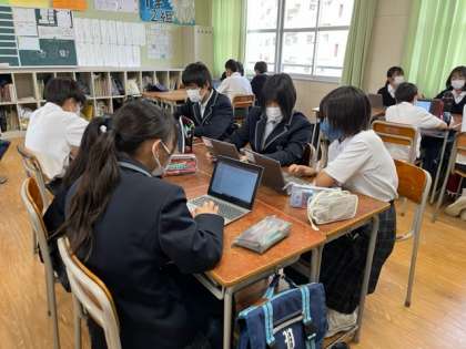 1年生は金曜日に行った校外学習の事後学習として調べ学習と発表の準備をしています。