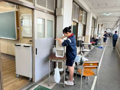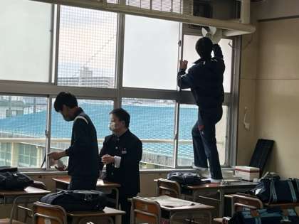 受験に行かない生徒は昨日に引き続き大掃除をしています。