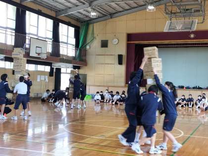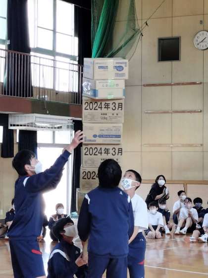 体育館には箱が落ちる音と悲鳴と歓声が響き渡っています。