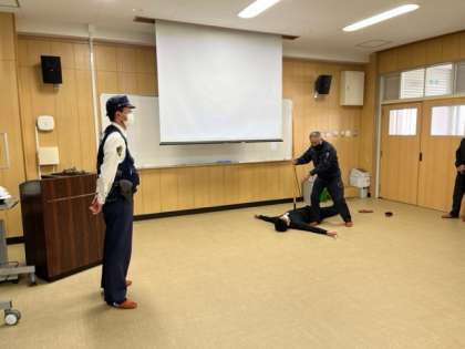 鶴見警察署の方々から、校内に不審者が侵入したときの対応について研修会を行いました。