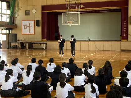 それぞれの部活動の個性や工夫が見られ、素晴らしい紹介でした。1年生も食い入るように見ており、明日からの部活動仮入部も楽しみですね。