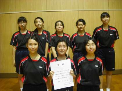 9月6日(日)におこなわれた2B卓球新人戦で、女子団体が3位になった。予選リーグ、蒲生戦を3−0、桜ノ宮戦を3−1で勝利し、1位通過で決勝トーナメントに進出した。決勝トーナメント1回戦は高倉中学校に3−0に勝利した。次の準決勝では、茨田中学校に0−3で敗れ3位になった。この学年は、1年前に全員が個人戦で1回戦敗退というスタートだったので、大きく成長してくれたと思います。今後のさらなる成長が楽しみです。次は優勝目指して練習に励んで欲しいです。