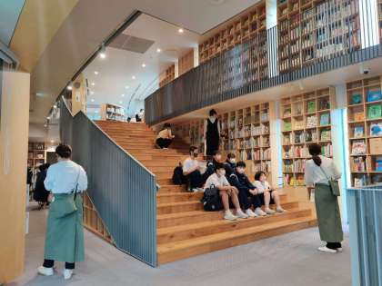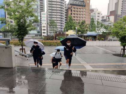 雨は降っていますが、子ども本の森へは全ての班が無事に到着し、見学をしています。