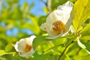 6月〜7月に開花時期を迎える「ナツツバキ」の花名は、花の形がツバキによく似て、夏に開花することから名付けられました。