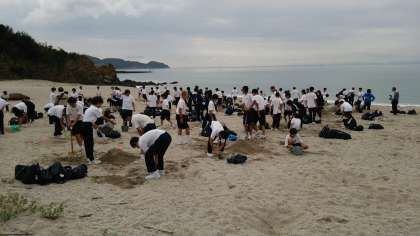 一泊移住、最後の活動 砂の造形がはじまりました。各班ごとに事前に作成したデザインをもとにして作品を作ります。