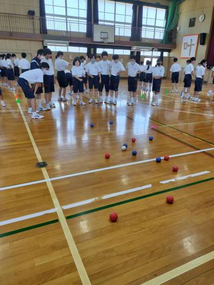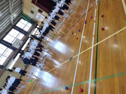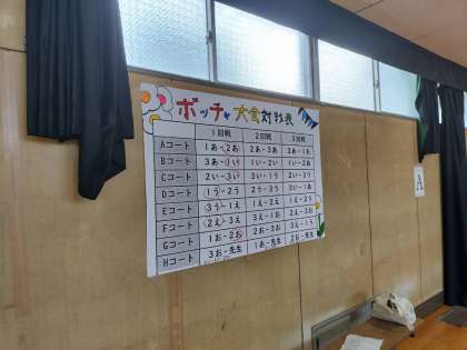 他の学校にボッチャのセットを貸して頂いての開催です。