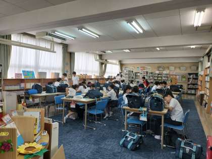 本を読む人、夏休みの課題をする人、懇談まで涼む人でたいへん賑わっています。