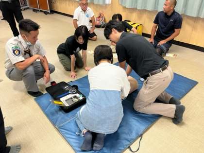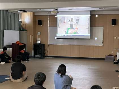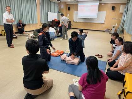 今日は教職員の救急救命処置について鶴見消防署からお招きし、講習を行っています。