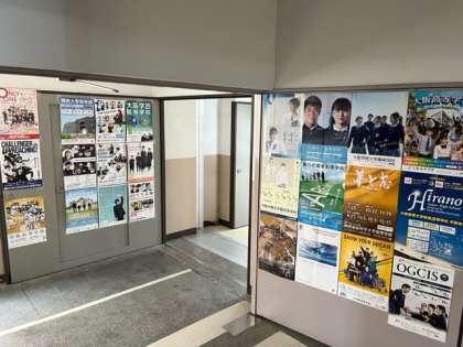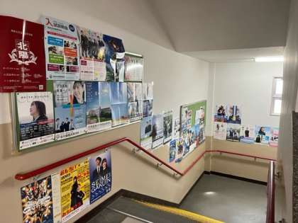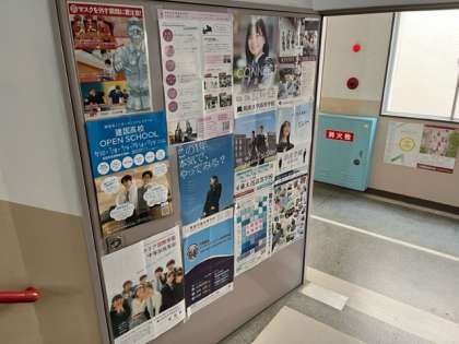 3年生の教室に行く階段にはたくさんの高校のポスターが貼っています。
