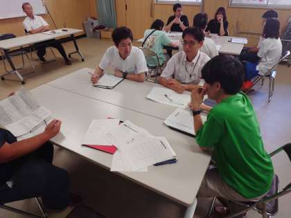 授業後によりよい授業をするために協議を行っております。