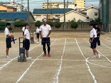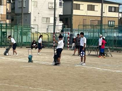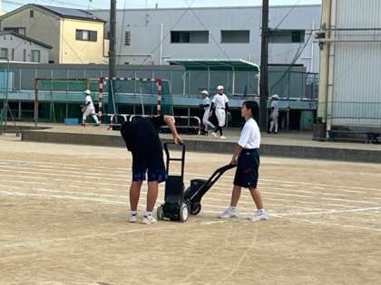 体育委員が明日の準備をしてくれています