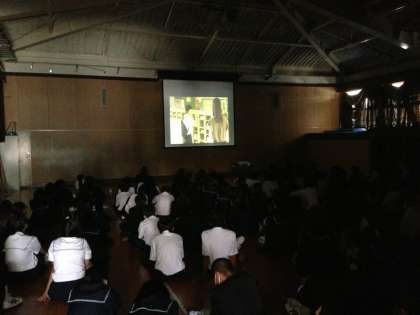 6時間目の総合の時間、1年生は格技室にて道徳のビデオを鑑賞、2・3年生は音楽室や体育館・各教室にて合唱の練習に取り組みました。