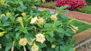 花言葉の「愛嬌」は、トランペットに似た花の姿が可愛らしいことにちなみます。