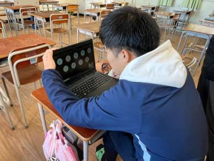 2年生は学年休業のためオンラインによる学活を行っています。元気な姿が見られます。テスト勉強も頑張って下さい!