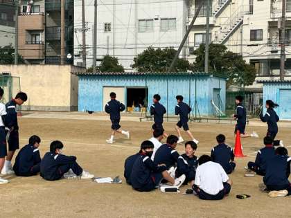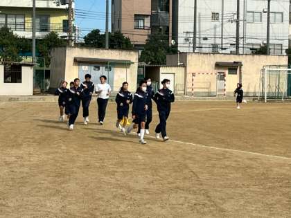 男女ともに持久走です。寒い中、一生懸命に走っています。