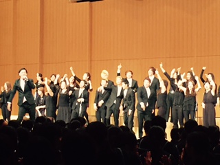 鑑賞行事ゴスペルアンサンブルの開会です。合唱コンクールの自由曲の指導をしていただいた大阪スクールオブミュージックによるゴスペルアンサンブルを披露していただきます。