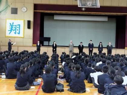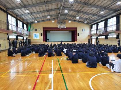 令和6年度の始業式が行われました。新入生を迎えて始めて全生徒が体育館に揃いました。