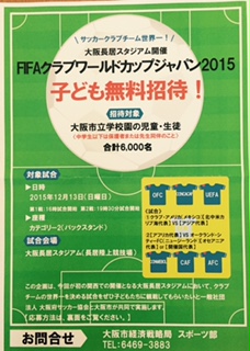 の案内です。12月13日(日)大阪長居スタジアムにて行われます。クラブチームに世界一を決める白熱した試合を是非この機会に観戦しましょう。