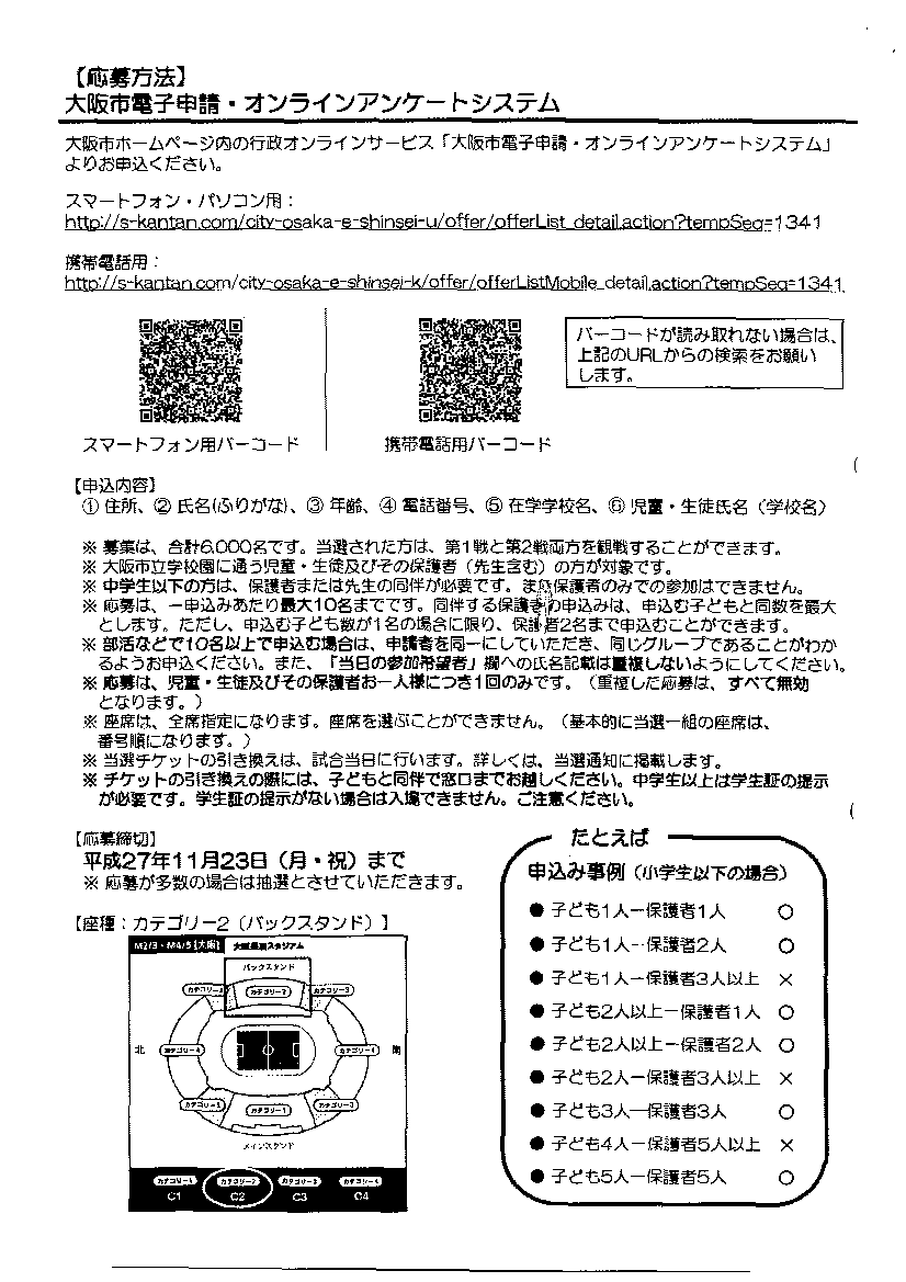 応募方法は学校で配られたプリントもしくは、下記にインターネットでの応募方法載せています。