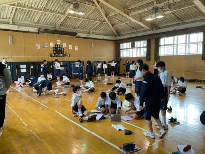 タブレットを活用しながら動きの確認をし、ラジオ体操の練習をしています。