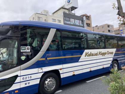 今、バスに乗車し養老SAに向けて出発しました!
