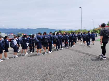 天気も良く、山が綺麗に見えています。クラス毎に昼食エリアに移動を開始しました