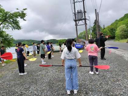 パドルの使い方、転覆したときの対処方法を教えていただき、この後着替えて、いよいよスタートです。