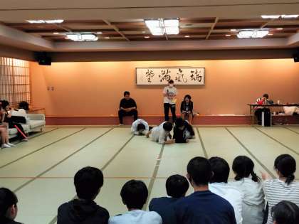 答えが分かった人は、ハイハイ、匍匐前進、クモ歩き、など指定された方法で早押しボタンまで移動します。驚きの移動速度を見せつける人もいました。