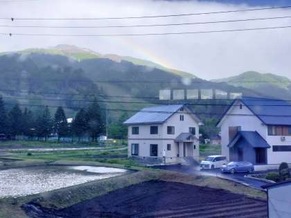 おはようございます。昨夜は雨と風の音がすごく、朝も強風は残っていますが朝食時には虹が見られました。最終日は屋内が多いので大丈夫そうです。
