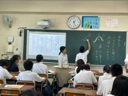 2年生、国語の授業も教育実習生の研究授業を行いました。