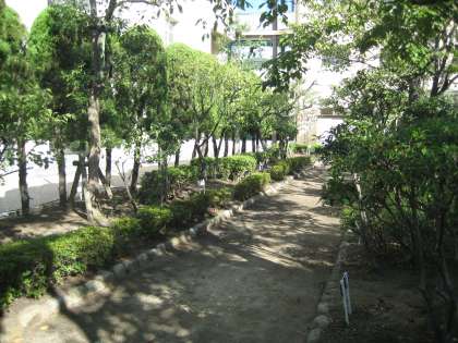 平成2年3月、当時のPTAの方々を中心に「緑化5カ年計画」で完成した中庭を、生徒たちの心の安らぎの場として、これからも大切にしていきたいと思います。