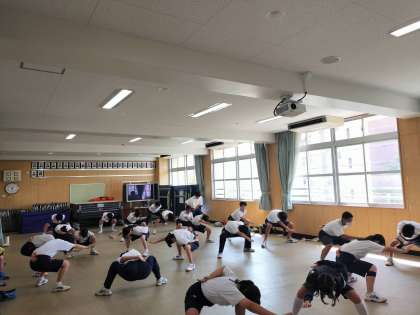 体育大会での団体演技、ソーラン節の練習です。