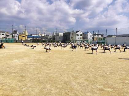 教室や特別教室で分散しての練習のあと、運動場での1回勝負の練習に臨みました。