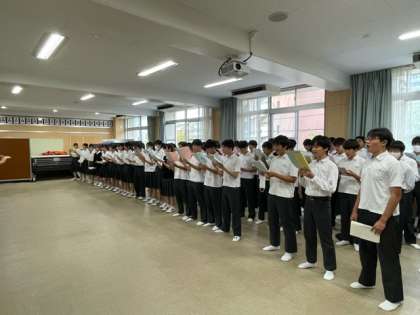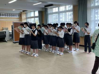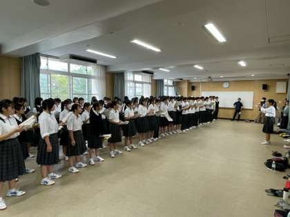 今日はパートごとの練習のあと、初めて学年全体での合唱をしました。まだまだ課題がありますが、さらなる高みを目指して頑張ってくれそうです。