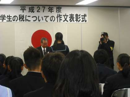 本校からは、3年生の北田真悠さんが「城東納税協会会長賞」を