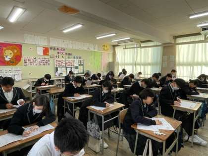 本日、明日の2日間で3年生は中学校最後の学年末テストに臨んでいます。