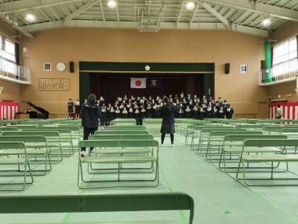 6時間目は、小学校の講堂を貸して頂いて、初めての全体での合唱練習を行っています。貴重な練習機会なので、熱心に取り組んでいます。