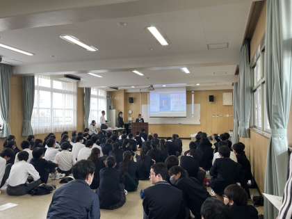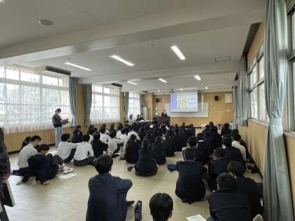 本日、3、4時間目に2年生はビブリオバトルを実施しました。自分が読んで感銘を受けた本をいかにみんなに伝えるかという知的書評合戦です。国語の授業の中でクラスごとに実施し、代表に選ばれた12名が発表しました。
